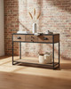 - The large console table has two large drawers and two small drawers and a storage shelf at the base
