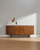 The contemporary Menara range is handcrafted and features vertically grooved acacia wood to showcase a rich palette of warm tones and is finished with a black powder coated steel frame. Each piece is designed to elevate any modern interior space and is backed by a 12 month warranty. The sideboard requires minor assembly and is delivered by our logistics partner within 10 to 14 working days.