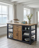 - The freestanding kitchen island has two drawers on both sides of the unit, a large cupboard which is accessible from double doors on either side and six open shelves