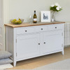 Add sophisticated, sleek lined elegance and modern country style to your dining room with the Signature Grey Large Sideboard. There's plenty of room on top for a vase of flowers or a display of family photographs, while behind the two cupboard doors, you can hide away all your table linen and crockery. The three drawers will take care of cutlery and utensils and the contrast of the smart grey paint finish and limed top makes for a timeless piece that will sit well in any classic or contemporary decorating scheme.
