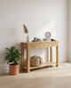 - The console table is finished with a resilient satin lacquer to highlight the grain of the wood