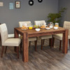 This beautiful, solid walnut dining table is practical, stylish and will comfortably seat four to six people. The table has chunky legs which are cut into the table top adding extra design detail. The table has a resilient satin lacquer finish, making it is easy to keep clean while emphasising the stunning wood grain.